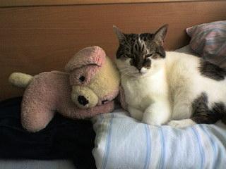 básněnka:..ten plyšák ---toho jsem dostala od kluka když mi bylo 16.No jo,už je to starej dědula a ještě růžovej.Myslím pejska o tom klukovi nemám ani zdání.:-)