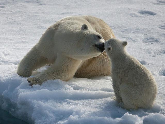 sedí dva lední medvědi