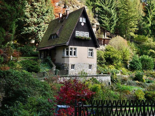 Pod lískovým keřem stojí domek
