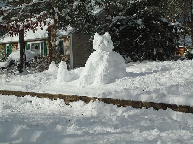 ..i kočky a kocouři s koťaty si staví své sněhuláky..