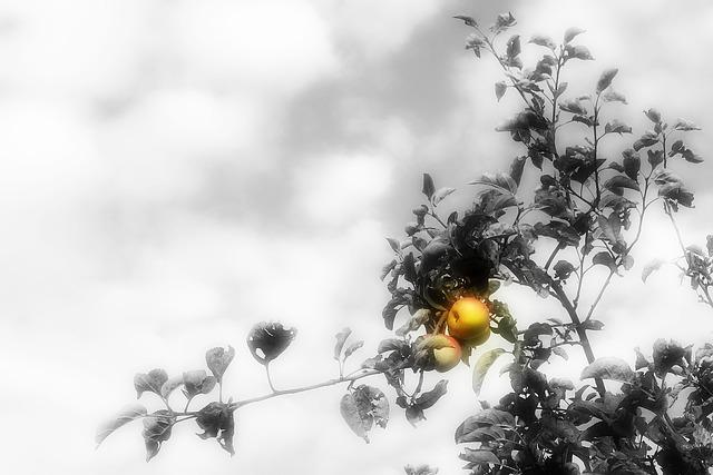 strom, květy, jablko spadené