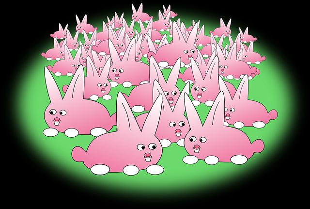 A ti růžoví králíci na všech dveřích,to si i paní starostová teď vzala kyblík s vodou,kartáč a mýdlo a ty králíky ze dveří raz dva umyla.