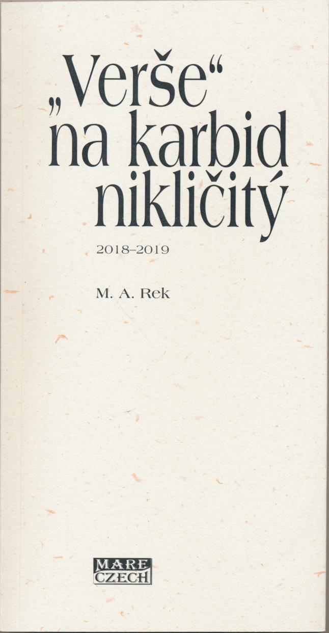 » autor: M.A.Rek ![]() Verše na NiC (toť chemická zkratka pro neexistující karbid nikličitý) sublimovaly od podzimu 2018 do podzimu 2019. http://mare-czech.cz/eshop/index.php?search=M.+A.+Rek&edition=-1 |